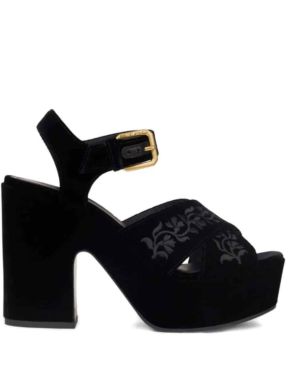 VELVET PLATFORM SANDALS WITH EMBROIDERY