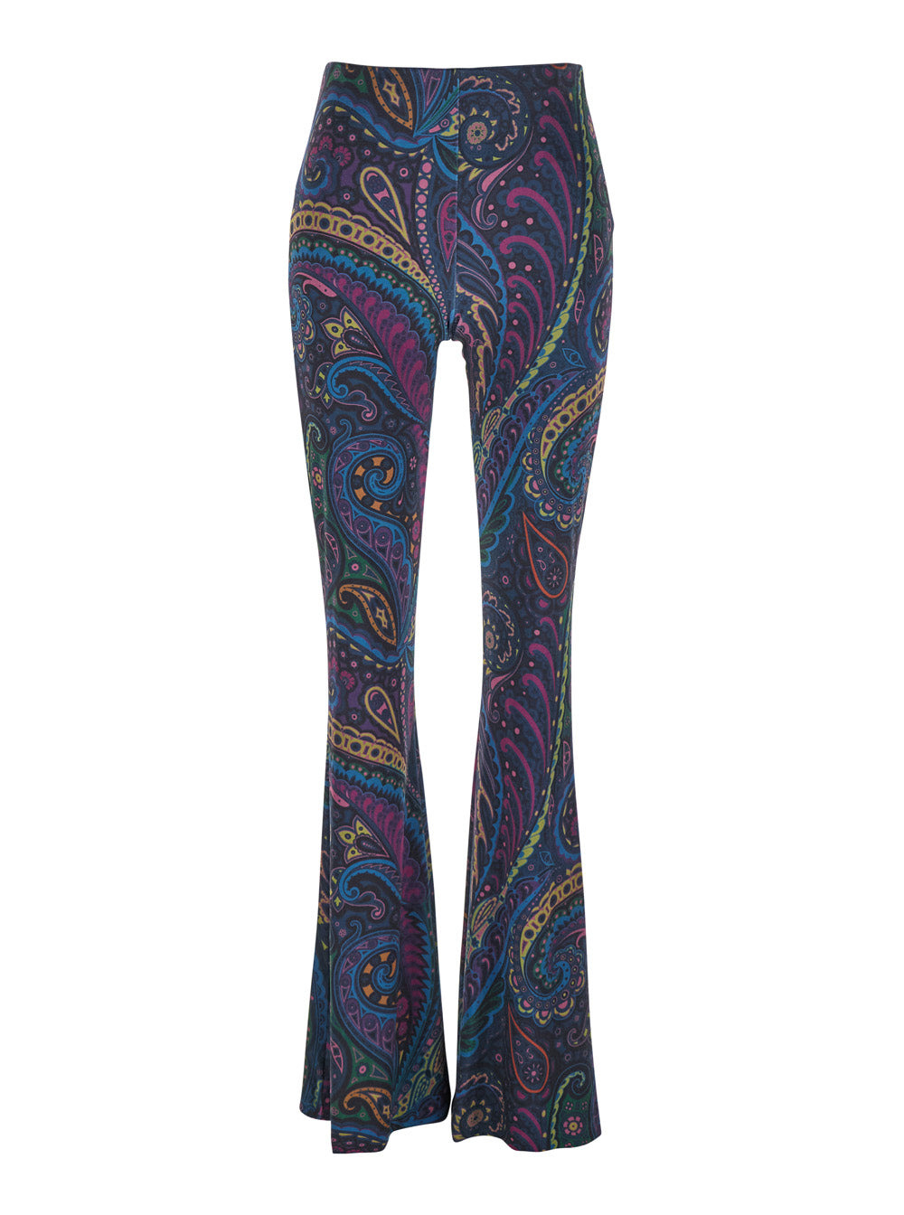 Etro Women Blue Flared Pants With All-Over Paisley Print In Velvet Woman