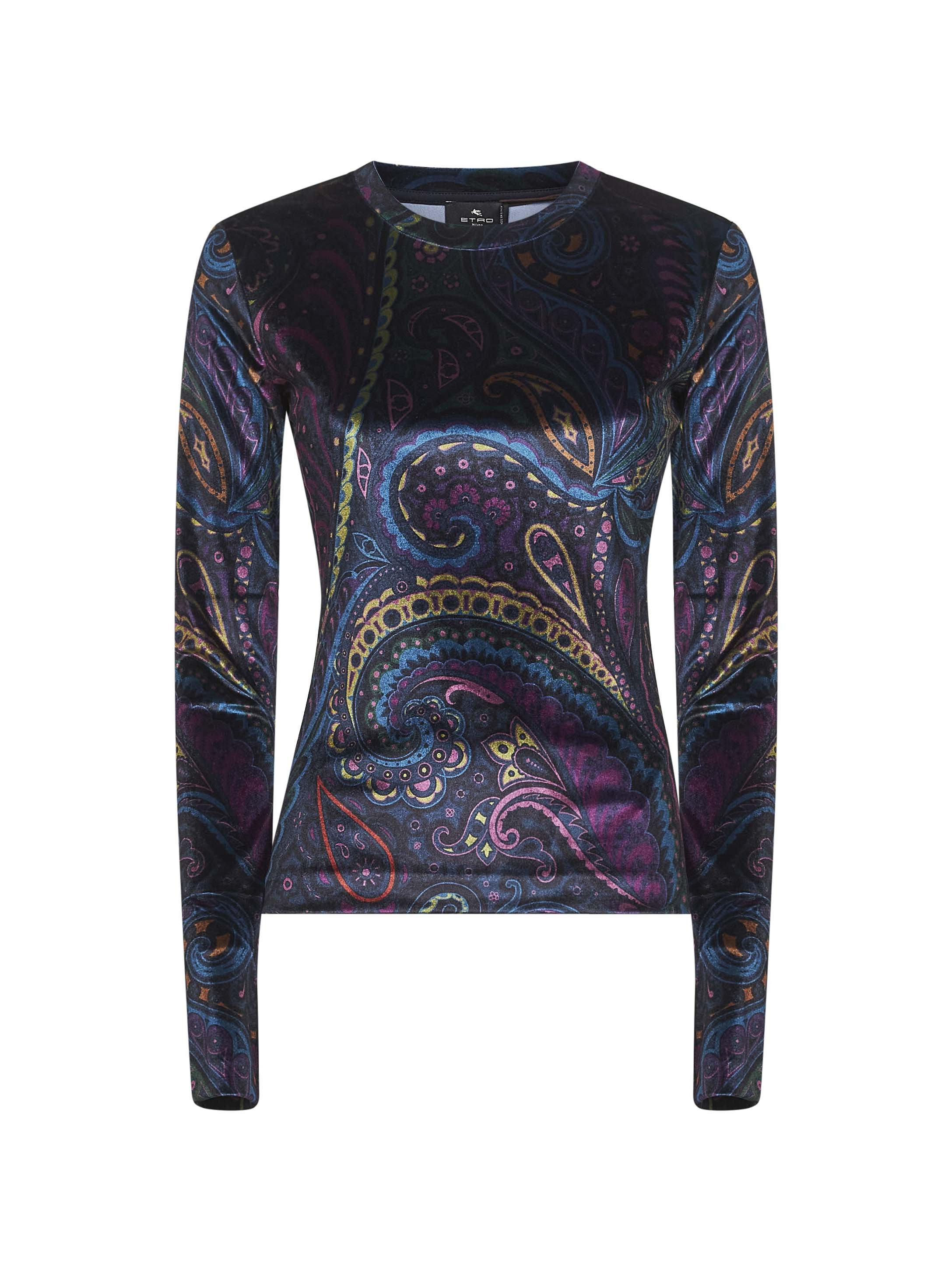 Etro Women Blue Paisley Print Stretch Chenille Top