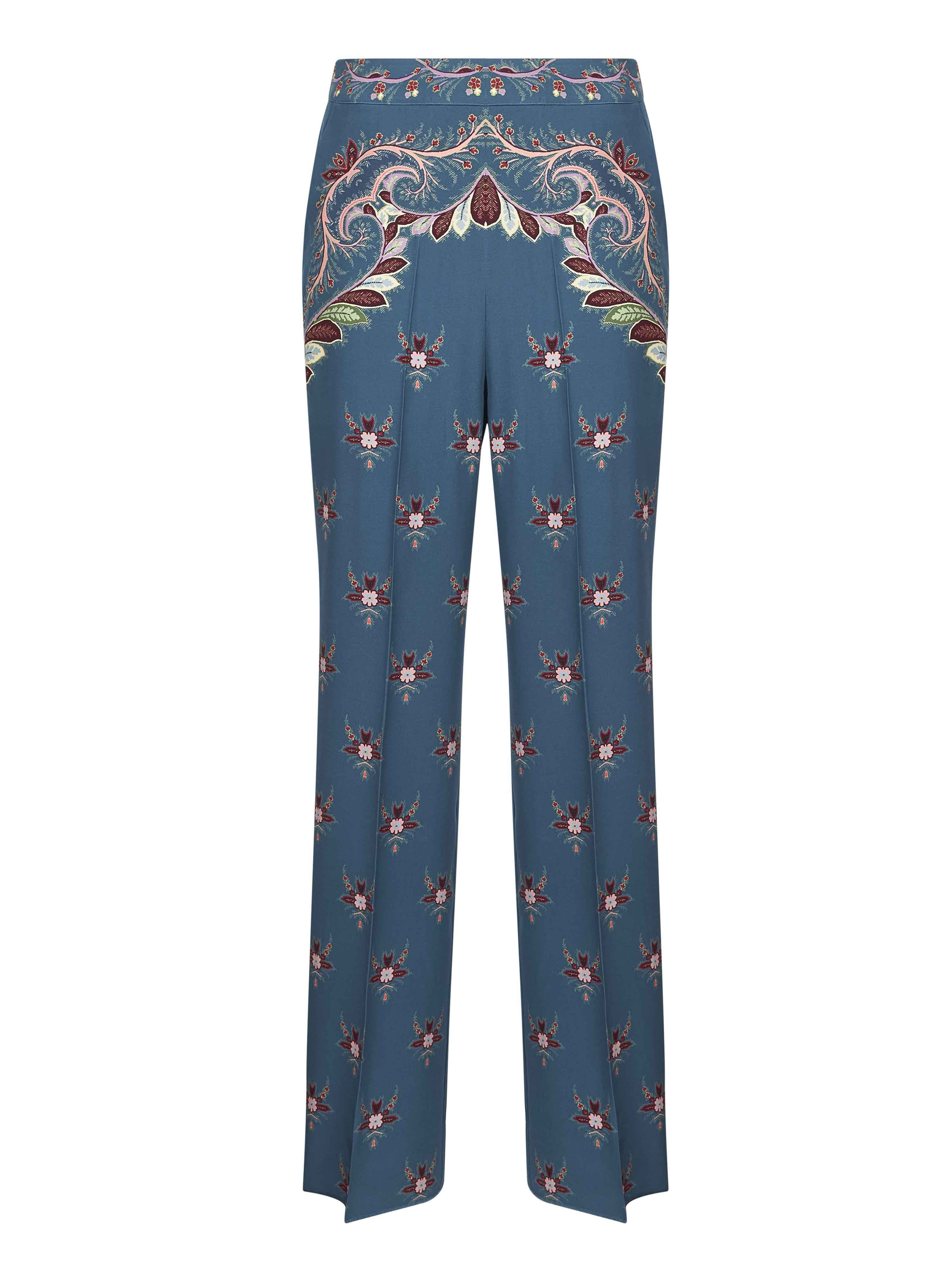 Etro Women Light Blue Floral Print Crepe De Chine Palazzo Trousers