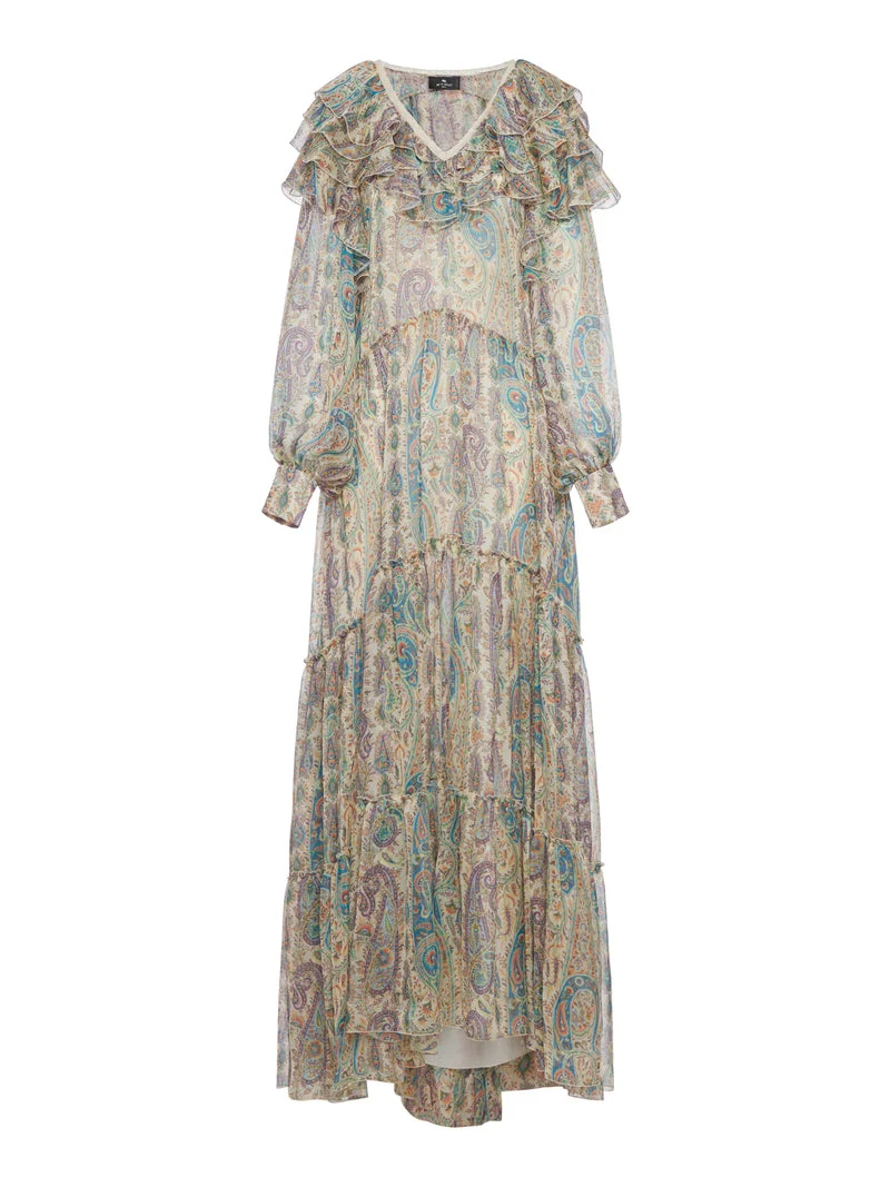 LONG SILK DRESS WITH FLORAL PAISLEY MOTIF