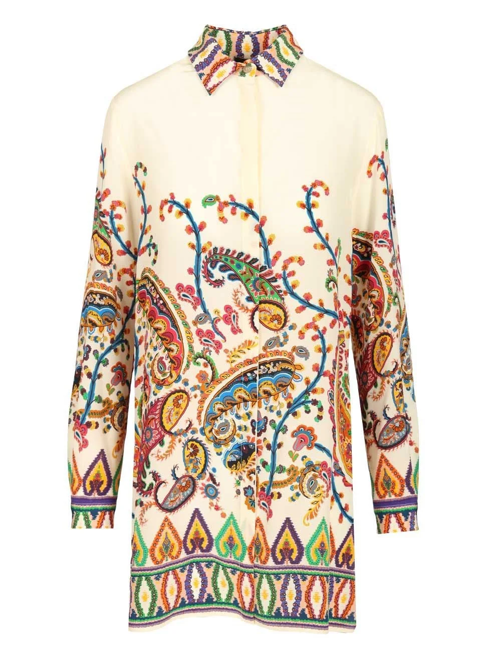 LONG SILK SHIRT WITH PLACED FLORAL PAISLEY PRINT