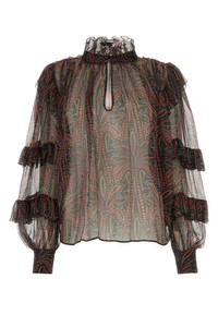 Ruffled Paisley Silk Blouse Multicolor