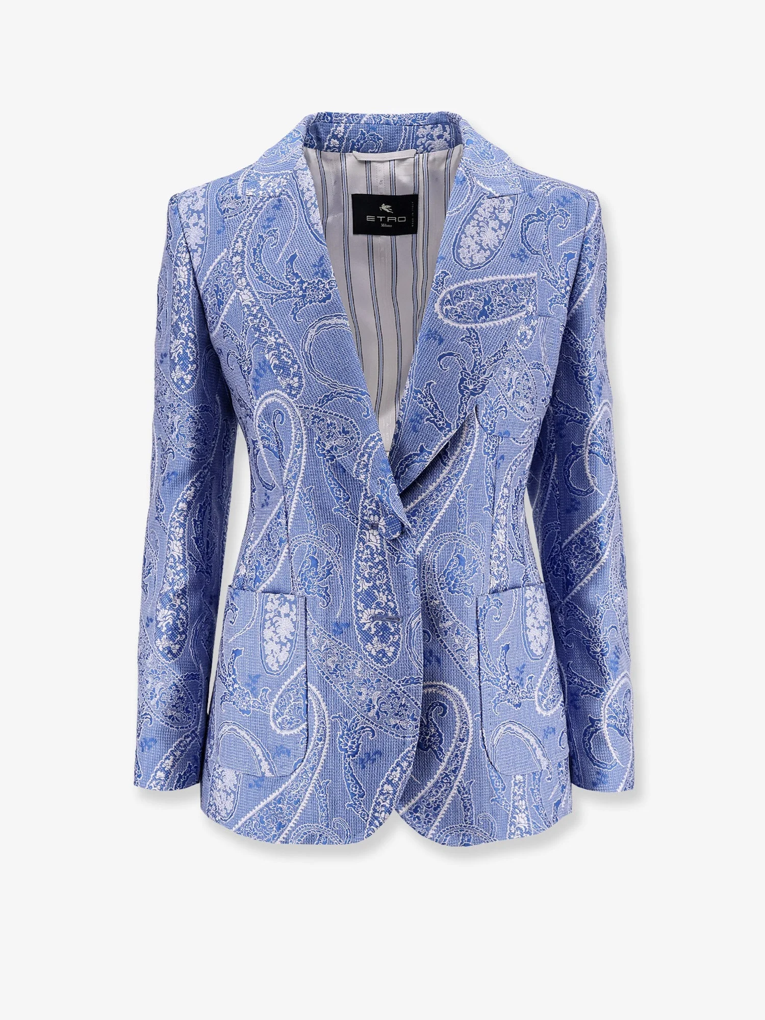 Brand: ETRO Product reference:WRCA0009 Color reference:99TJA92S9884 Color:Blue Season:26P Gender:Woman Category 1:Abbigliamento Category 2:Blazer and Gilet Made in:ITALIA Iconic Paisley print Two covered buttons Three patch pockets Fitted Made in Italy 76% polyester, 15% silk, 9% polyamide Lining: 52% viscose, 48% acetate SKU: WRCA000999TJA92S9884 Size Type: IT SKU: WRCA000999TJA92S9884 Our Products Are 100% Genuine. In All Cases We Stand By The Authenticity Of Every Product Sold On Our Site. All sales are final and we only accept returns for quality issue. Buyer is responsible for any import tax/duty if applicable.