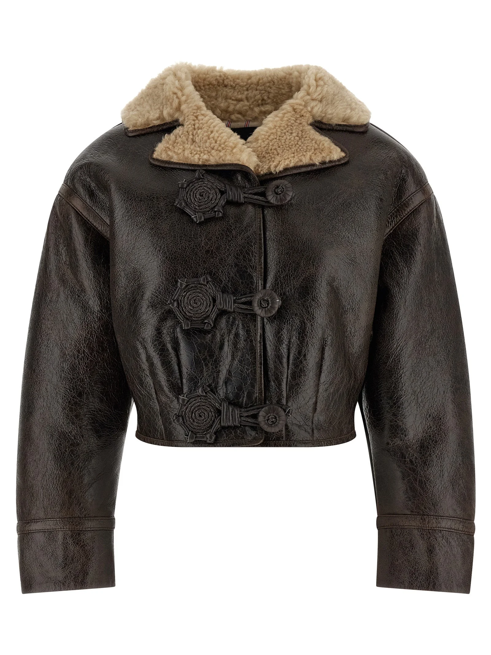 Craquele sheepskin jacket with shearling lining and knitted melange wool back, crop model, lapel collar, closure with braided leather wings on the front, pockets, long sleeves with dropped shoulders. true to size fit 100% leather SKU: WROG0002AP377M0697 Our Products Are 100% Genuine. In All Cases We Stand By The Authenticity Of Every Product Sold On Our Site. All sales are final and we only accept returns for quality issue. Buyer is responsible for any import tax/duty if applicable.