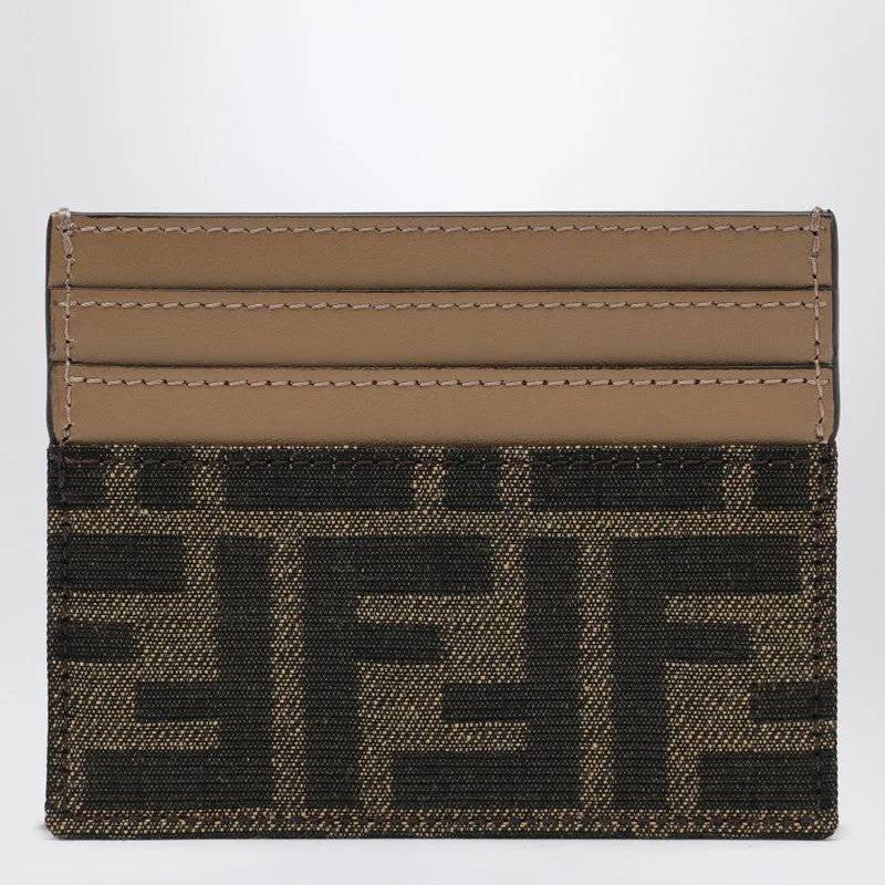 Fendi Baguette Card Case In Brown Ff Jacquard Fabric Women