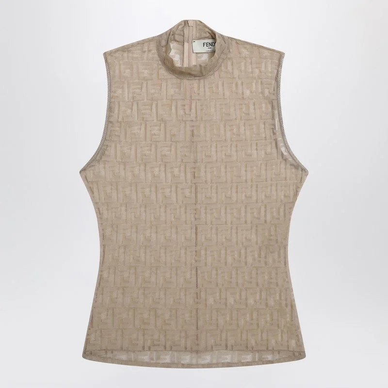 Fendi Beige Semi-Transparent Top With Ff Motif Women