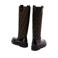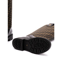 black/chocolate brown canvas/leather FF motif patterned jacquard pull-on style 35mm block heel double pull-tab at the opening gold-tone logo lettering round toe knee-length branded leather insole rubber soleMADE IN:ItalyMATERIAL:Leather: 100.0%COLOR:BLACK SKU: AHGY8W8574F0PMM Our Products Are 100% Genuine. In All Cases We Stand By The Authenticity Of Every Product Sold On Our Site. All sales are final and we only accept returns for quality issue. Buyer is responsible for any import tax/duty if applicable.