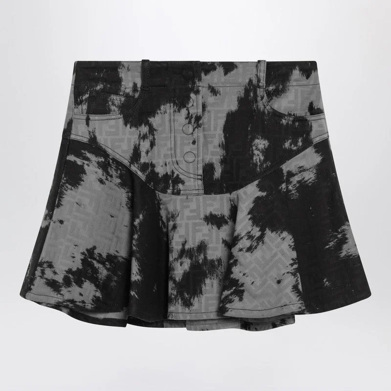 Fendi Black Ff Animalier Denim Skirt Women