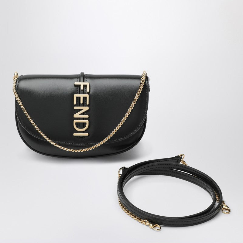 Fendi Black Leather Fendigraphy Wallet On Chain Women