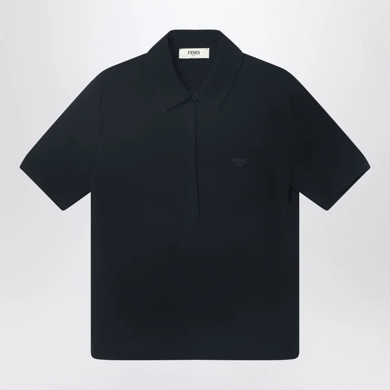 Fendi Black Silk Cady Polo T-Shirt Women
