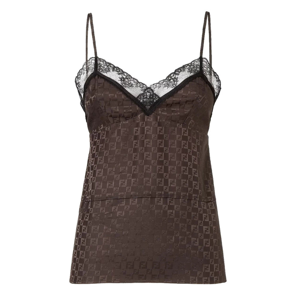 brown jacquard FF pattern lace trim spaghetti straps straight hem silk MADE IN:ItalyMATERIAL:Silk: 100.0%COLOR:BROWN SKU: AUQGFS9753F1T6H Our Products Are 100% Genuine. In All Cases We Stand By The Authenticity Of Every Product Sold On Our Site. All sales are final and we only accept returns for quality issue. Buyer is responsible for any import tax/duty if applicable.