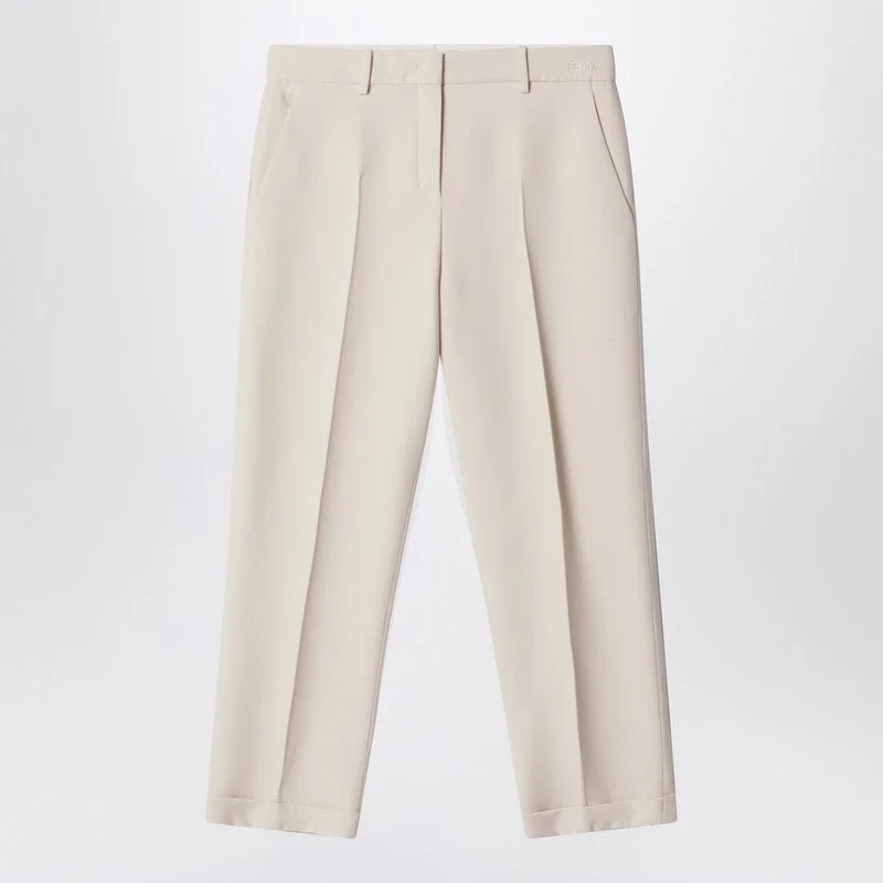 Fendi Cream Beige Wool And Silk Trousers Women