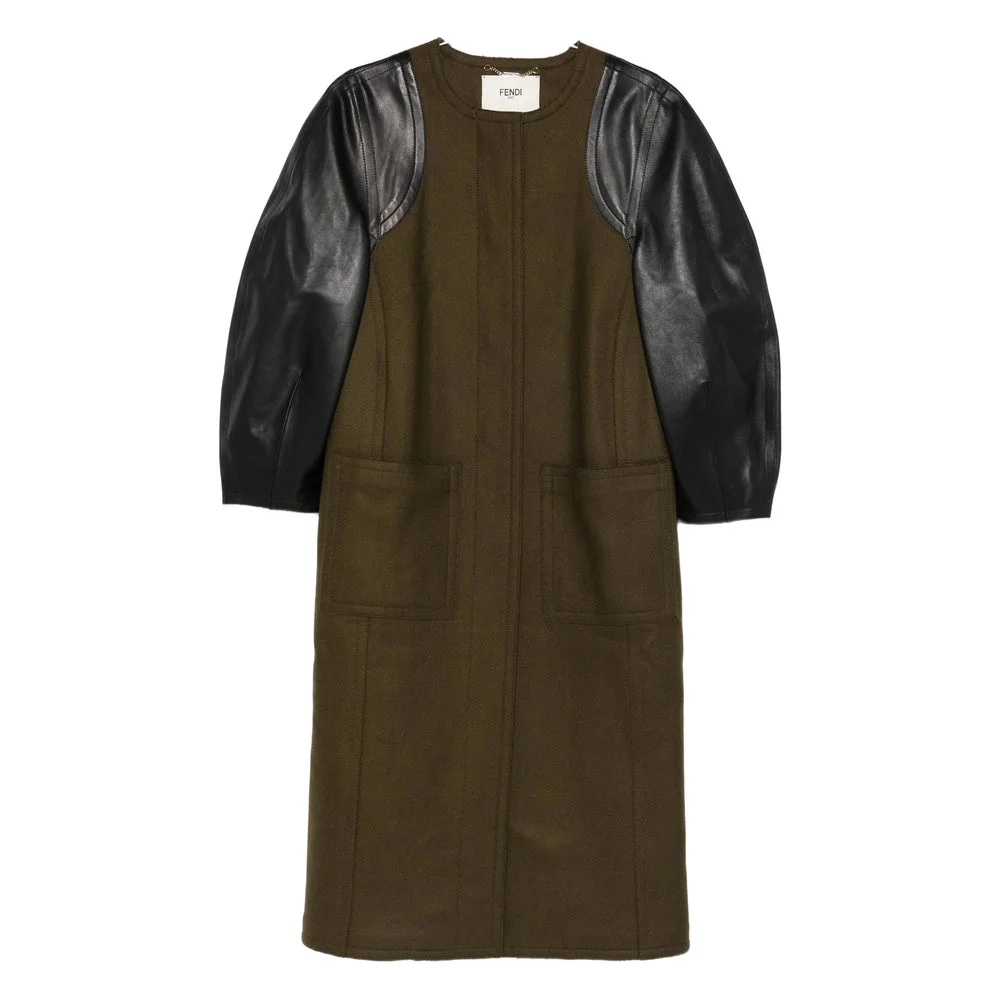 olive green leather sleeves crew neck front patch pockets panelled construction straight hem MADE IN:BangladeshMATERIAL:Lamb Skin: 100.0%, Viscose: 100.0%, Wool: 100.0%COLOR:GREEN SKU: AJ0KFF6150F1T6G Our Products Are 100% Genuine. In All Cases We Stand By The Authenticity Of Every Product Sold On Our Site. All sales are final and we only accept returns for quality issue. Buyer is responsible for any import tax/duty if applicable.