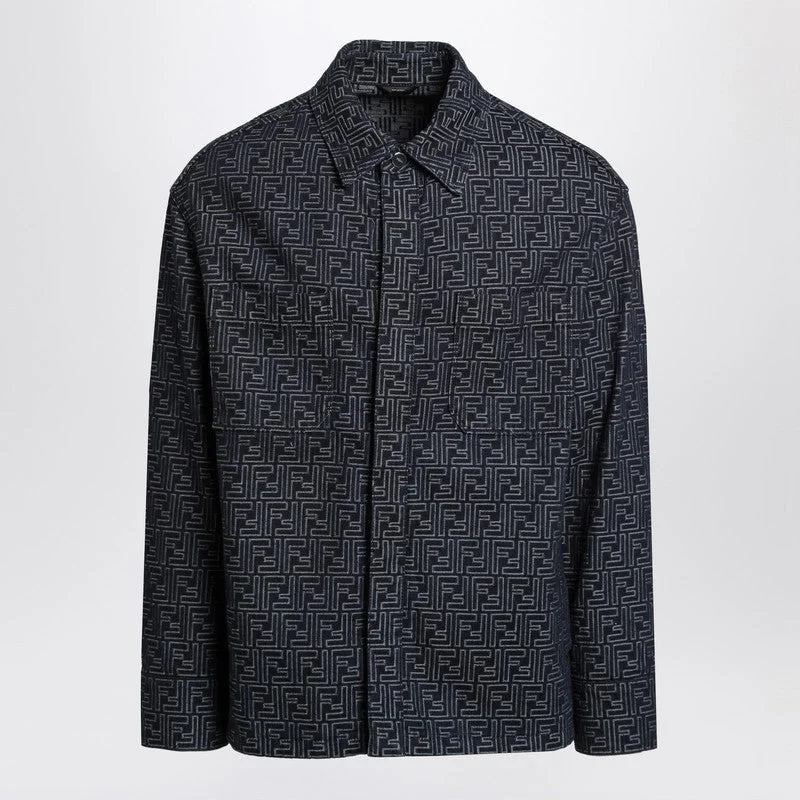 Fendi Indigo Blue Jacket With Ff Jacquard Men