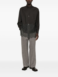 Fendi Men Black Pinstriped Wool Shirt With Lace