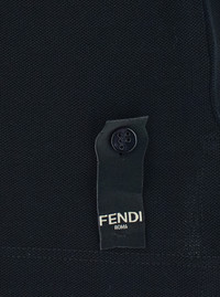 Fendi Men Black Polo Shirt With Logo Patch On The Front In Cotton Pique Man