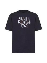 Fendi Men Blue Cotton Fendi Roma 1925 Printed T-Shirt