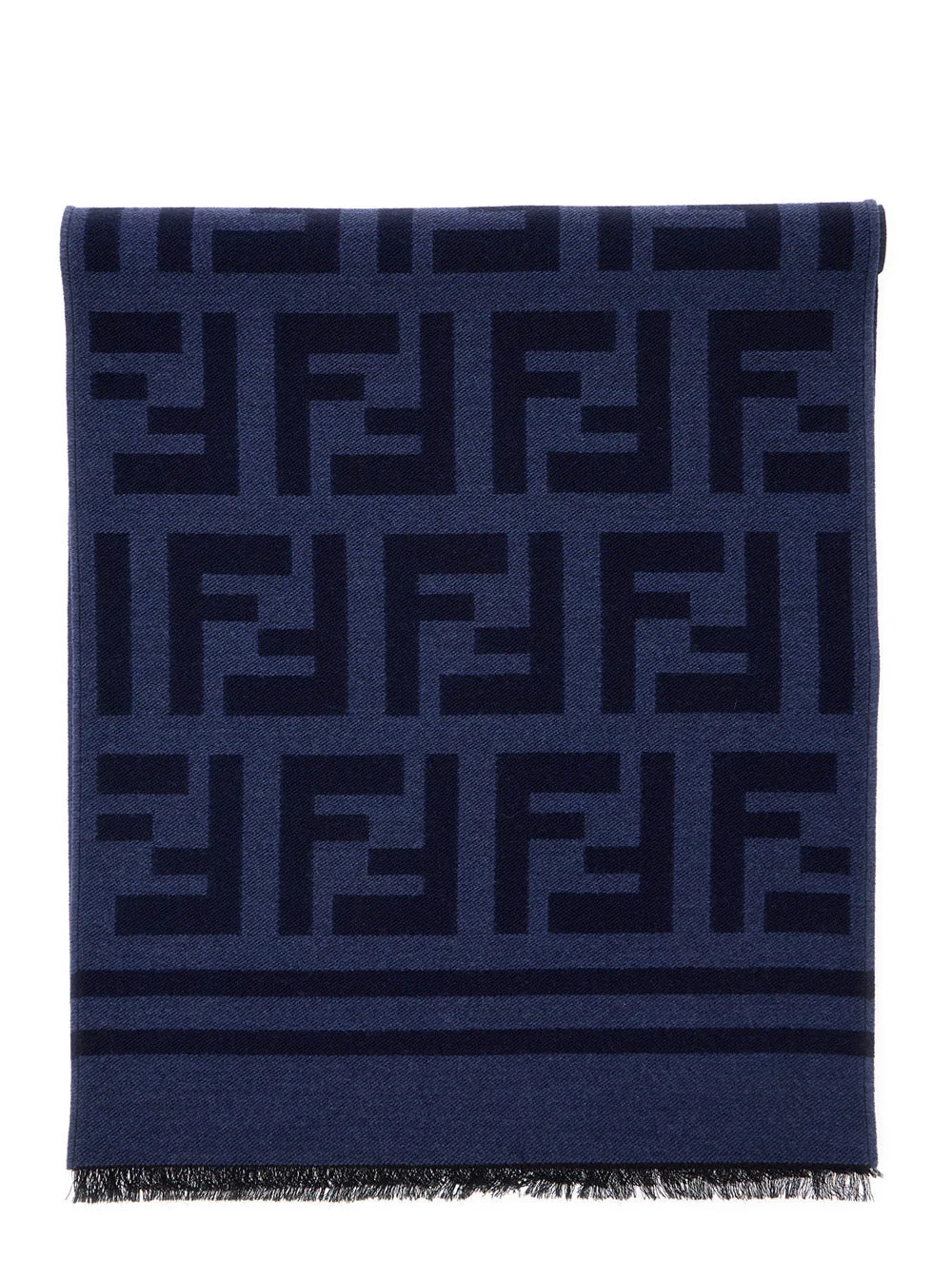 Fendi Men Blue Scarf With All-Over Ff Motif And Frayed Hem In Wool Woman