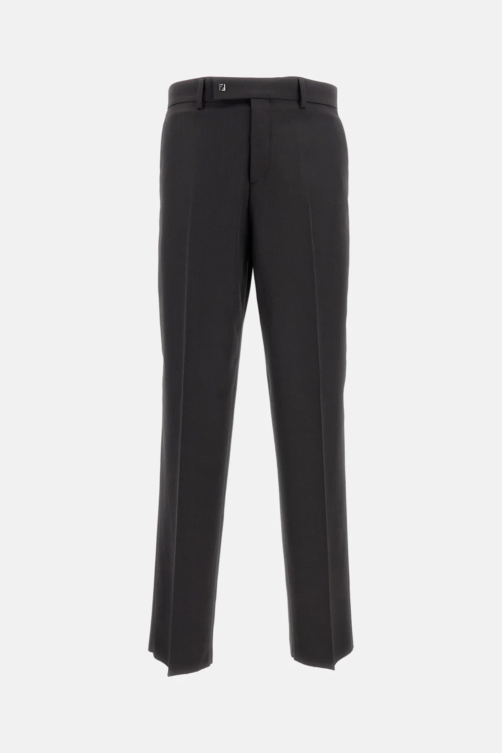 Description: Brown wool crepe cigarette trousers with pressed pleat, side pockets, and belt loops at the waist. Concealed zip and hook closure. Palladium-finish metal micro FF logo detail with button effect. Made in Italy.Made in: Italia SKU: FB1089ASCBF0TY8 Our Products Are 100% Genuine. In All Cases We Stand By The Authenticity Of Every Product Sold On Our Site. All sales are final and we only accept returns for quality issue. Buyer is responsible for any import tax/duty if applicable.
