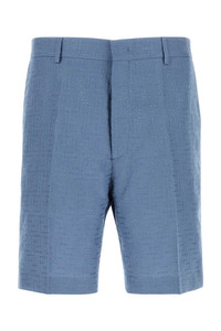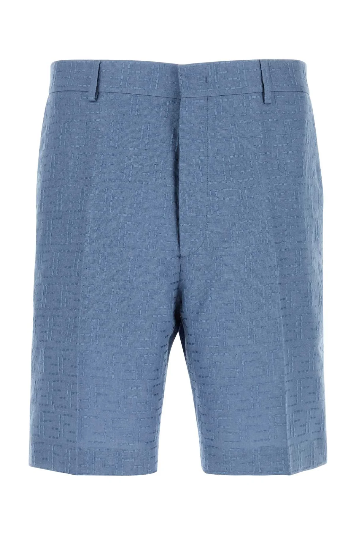 Fendi Men Cerulean Blue Linen Blend Bermuda Shorts