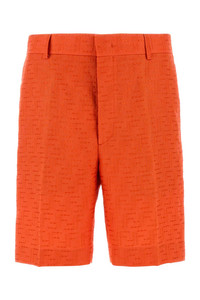Fendi Men Coral Linen Blend Bermuda Shorts