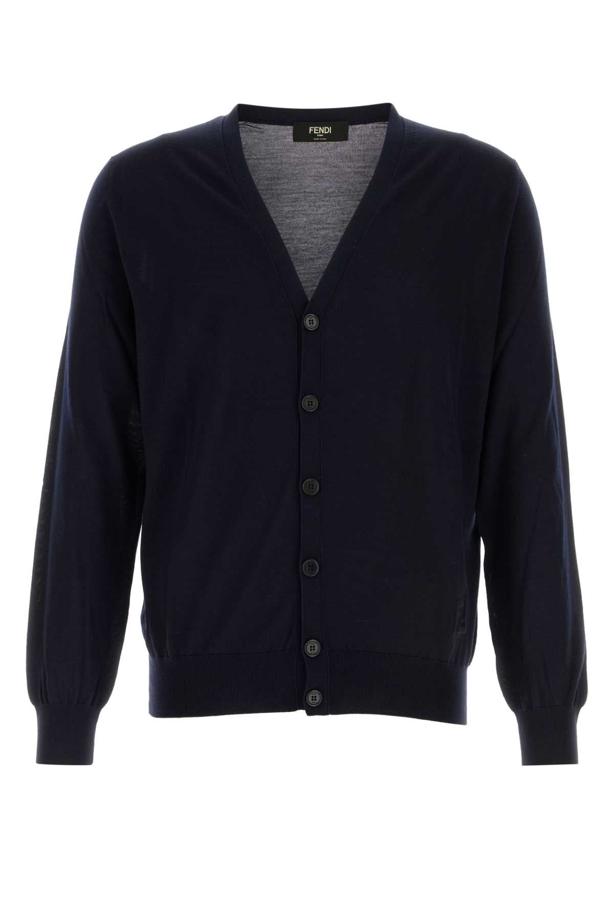 Fendi Men Midnight Blue Stretch Wool Cardigan