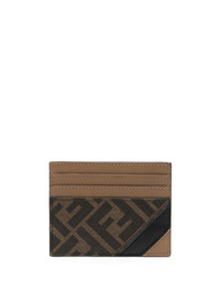 Card holder with six slots and flat central pocket. Made of textured fabric with FF motif in brown a