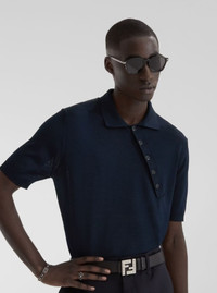 Fendi Men Silver-Colored Bracelet With Leather Details And Open Design In Brass Man
