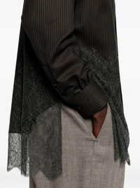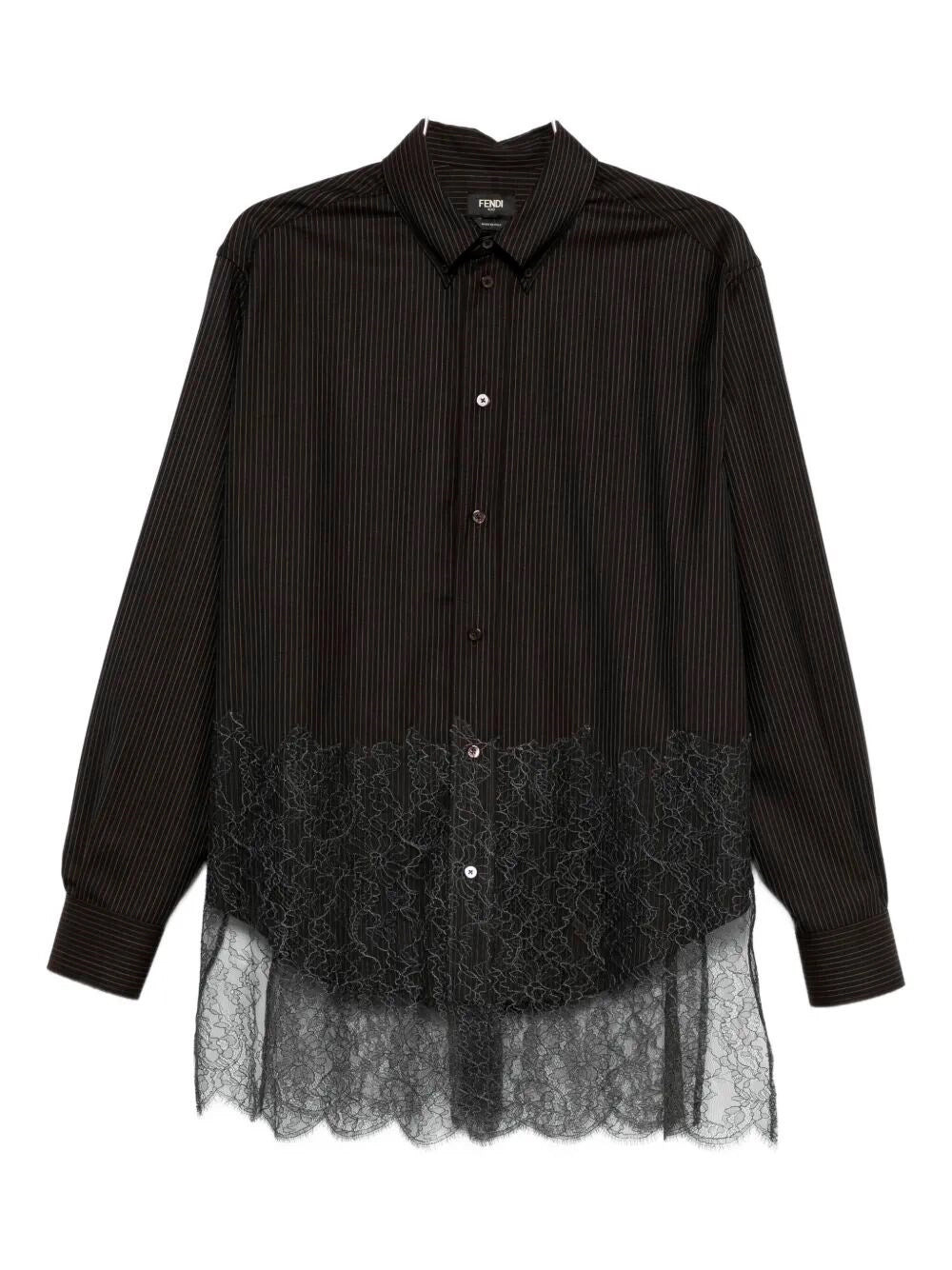 Fendi Men Wool Shirt With Stripes And Lace