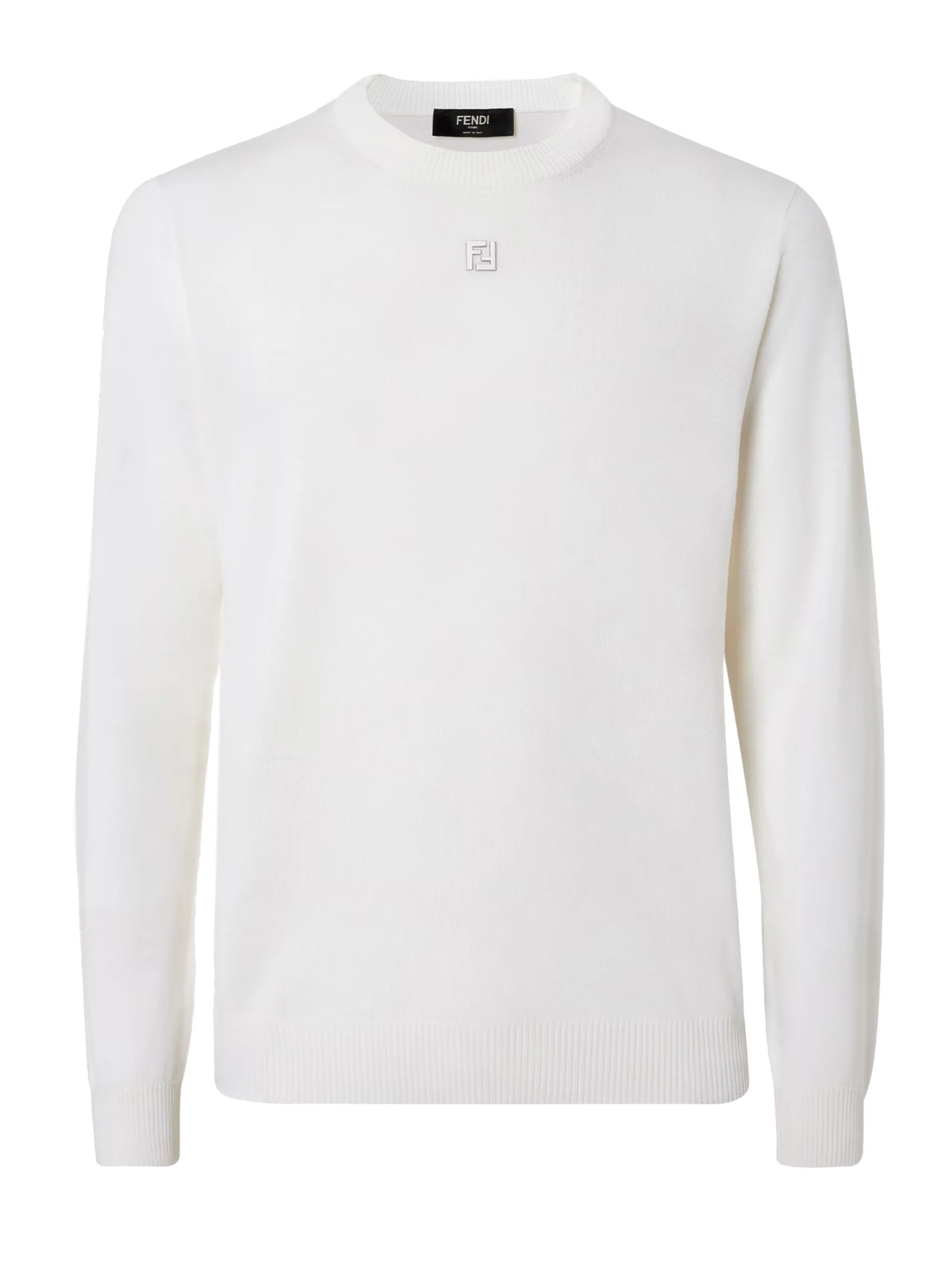 DESCRIPTION ::FENDI white wool crewneck sweater with pivvolo loho in palladium metal and ribbed edges.MADE IN::ItalyCOLOR::WHITE SKU: FZX091AU84F0QA0WHITE Our Products Are 100% Genuine. In All Cases We Stand By The Authenticity Of Every Product Sold On Our Site. All sales are final and we only accept returns for quality issue. Buyer is responsible for any import tax/duty if applicable.