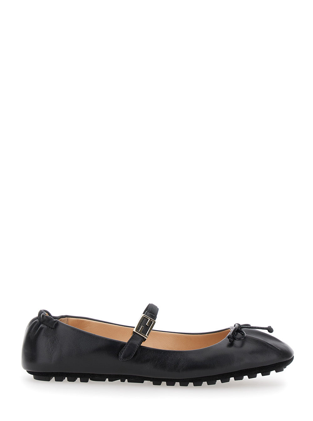 Fendi Women Black Ballerinas With Curled Heel And Ff Logo Plaque On The Strap In Leather Woman