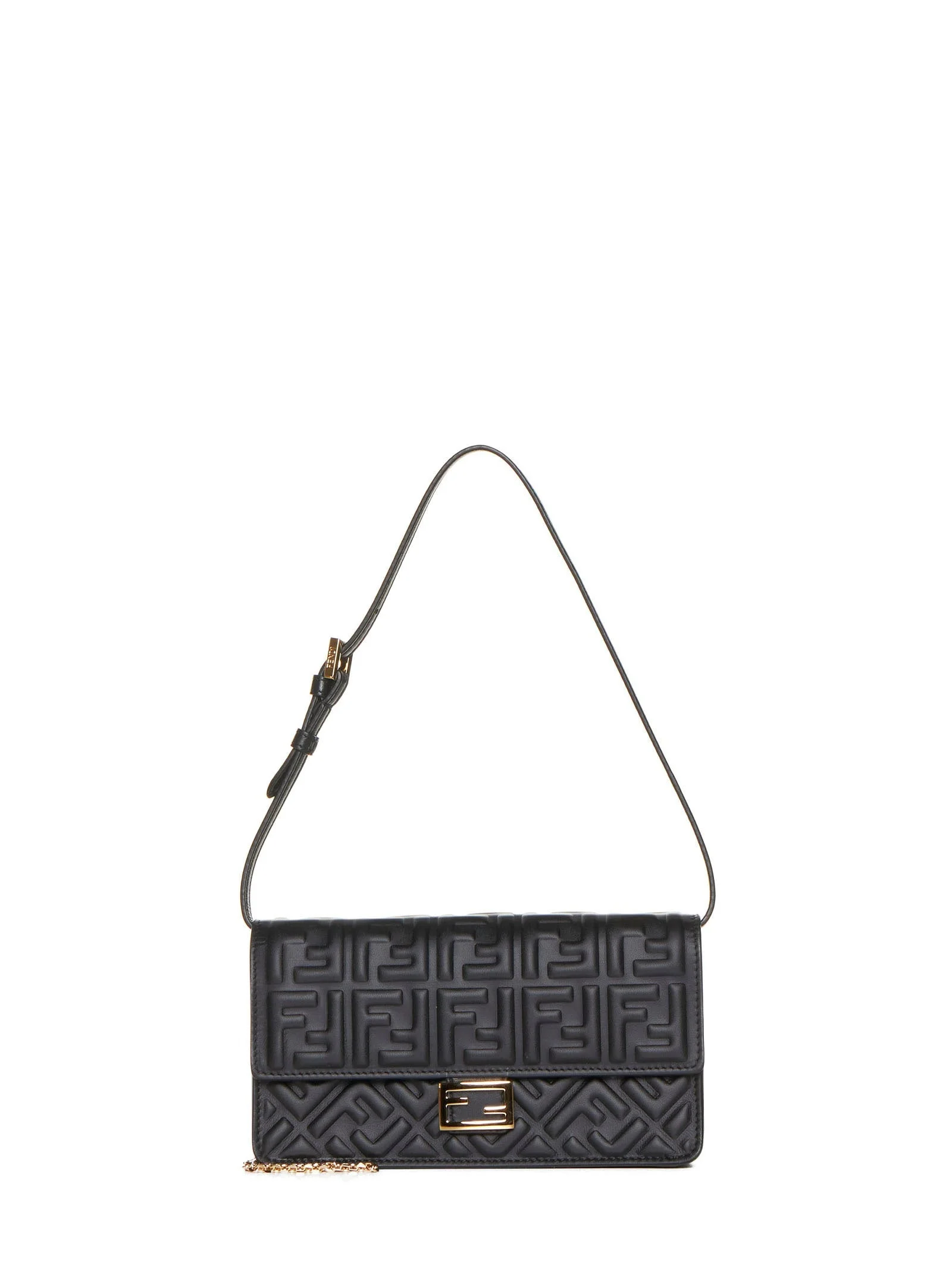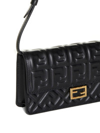 •Compact Baguette wallet with flap and FF closure •Features an internal compartment with 6 card slots •Double strap: one adjustable leather strap and one thin removable chain strap to wear the bag under the arm, cross-body, or as a clutch •Made of black nappa leather with embossed FF motif •Gold-finish metal hardware •Made in Italy SKU: 8m0498aajdf0kur Our Products Are 100% Genuine. In All Cases We Stand By The Authenticity Of Every Product Sold On Our Site. All sales are final and we only accept returns for quality issue. Buyer is responsible for any import tax/duty if applicable.