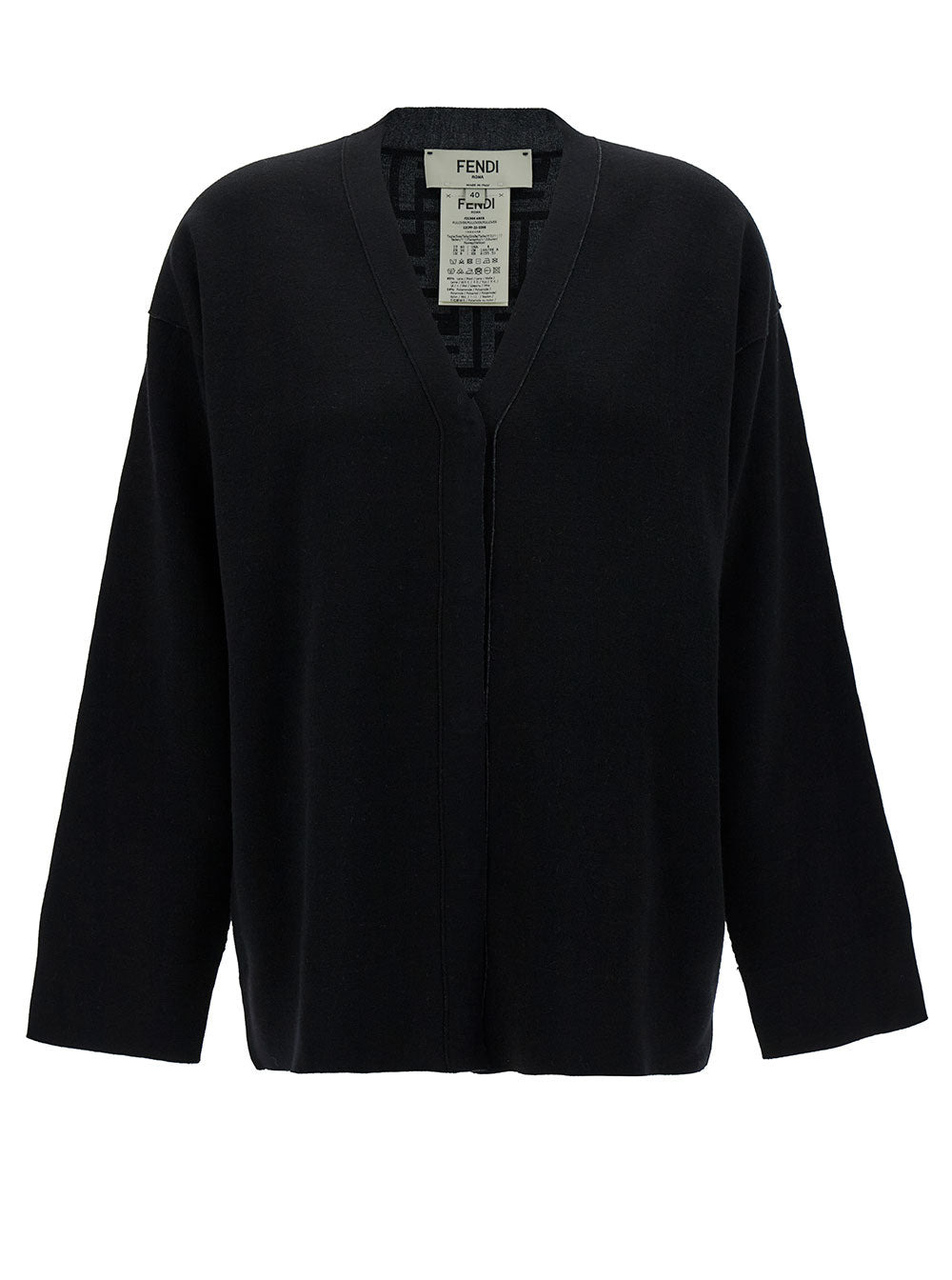 Fendi Women Black Reversible Cardigan With Jacquard Ff Motif In Knit Woman