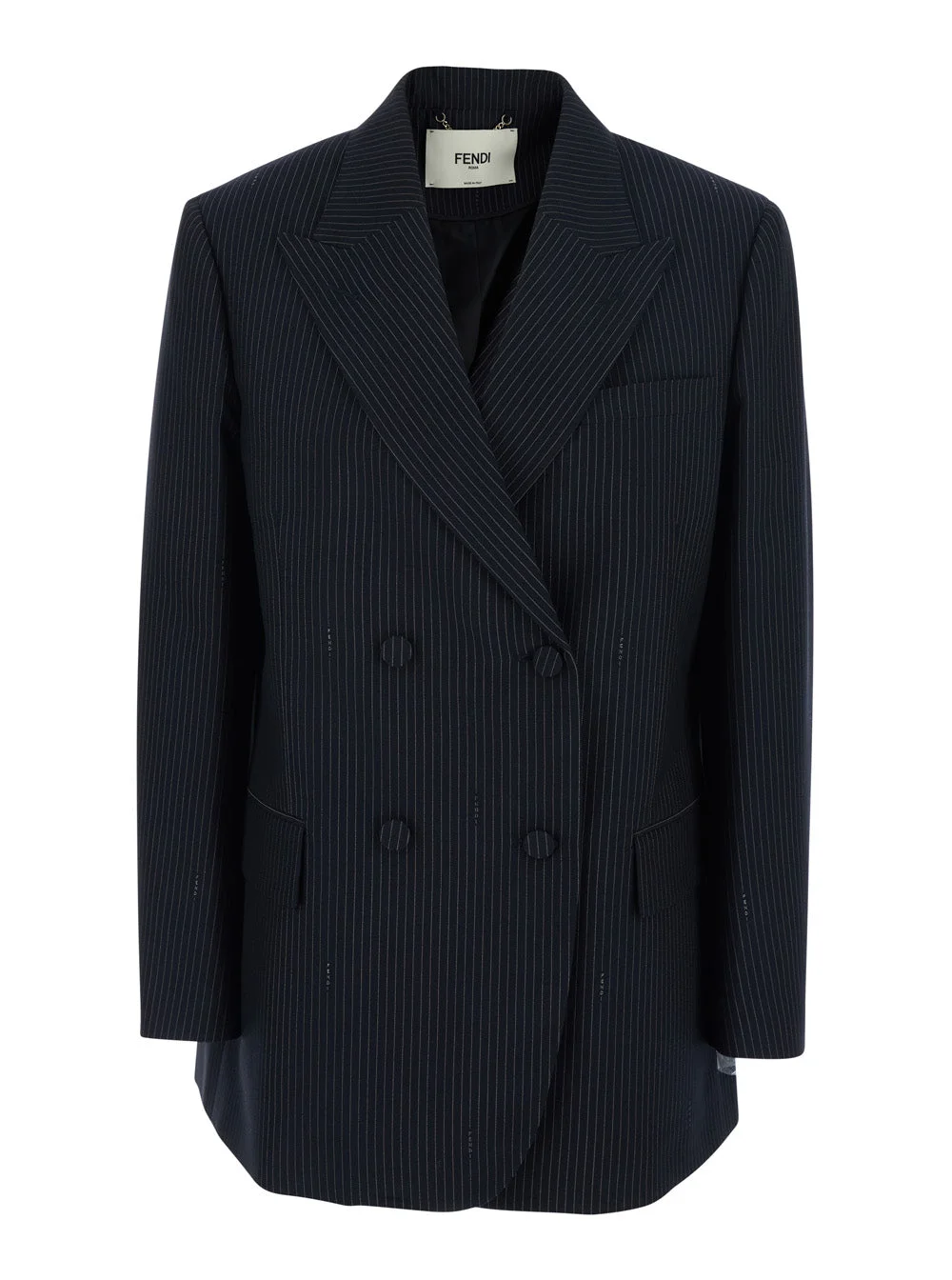Fendi Women Blue Double-Breasted Jacket With Peak Revers And Pinstripe Motif In Wool Blend Woman