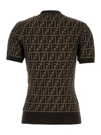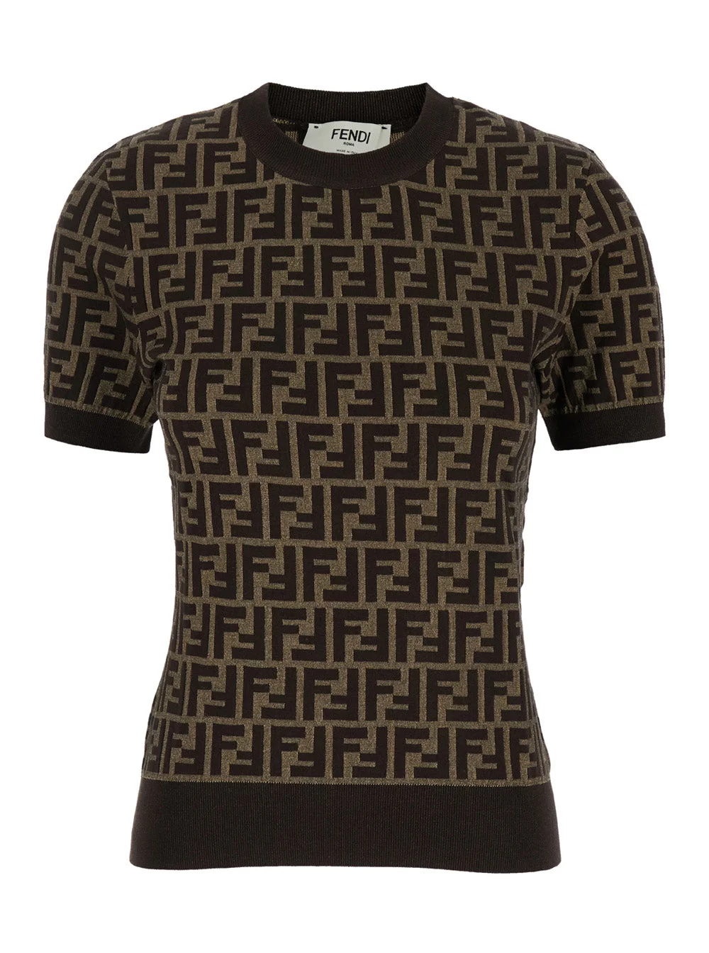 Fendi Women Brown T-Shirt With Short Sleeves And All-Over Ff Motiv In Cotton Woman