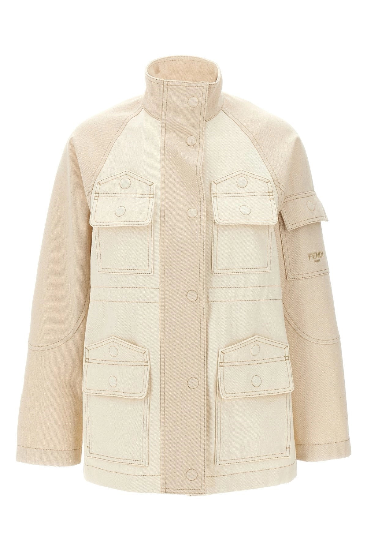 Two-tone cotton denim parka with contrast stitching, high neck, adjustable drawstring at the waist, zip and snap button closure, pockets, long sleeves. Color: Beige Size & Fit: Comfort fit Composition: 100% cotton Made in: Italy SKU: FLF802AT23F08QQ Our Products Are 100% Genuine. In All Cases We Stand By The Authenticity Of Every Product Sold On Our Site. All sales are final and we only accept returns for quality issue. Buyer is responsible for any import tax/duty if applicable.