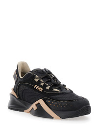 Fendi Women 'Fendi Flow' Black Low Top Sneakers With Diagonal F Detail In Leather Woman