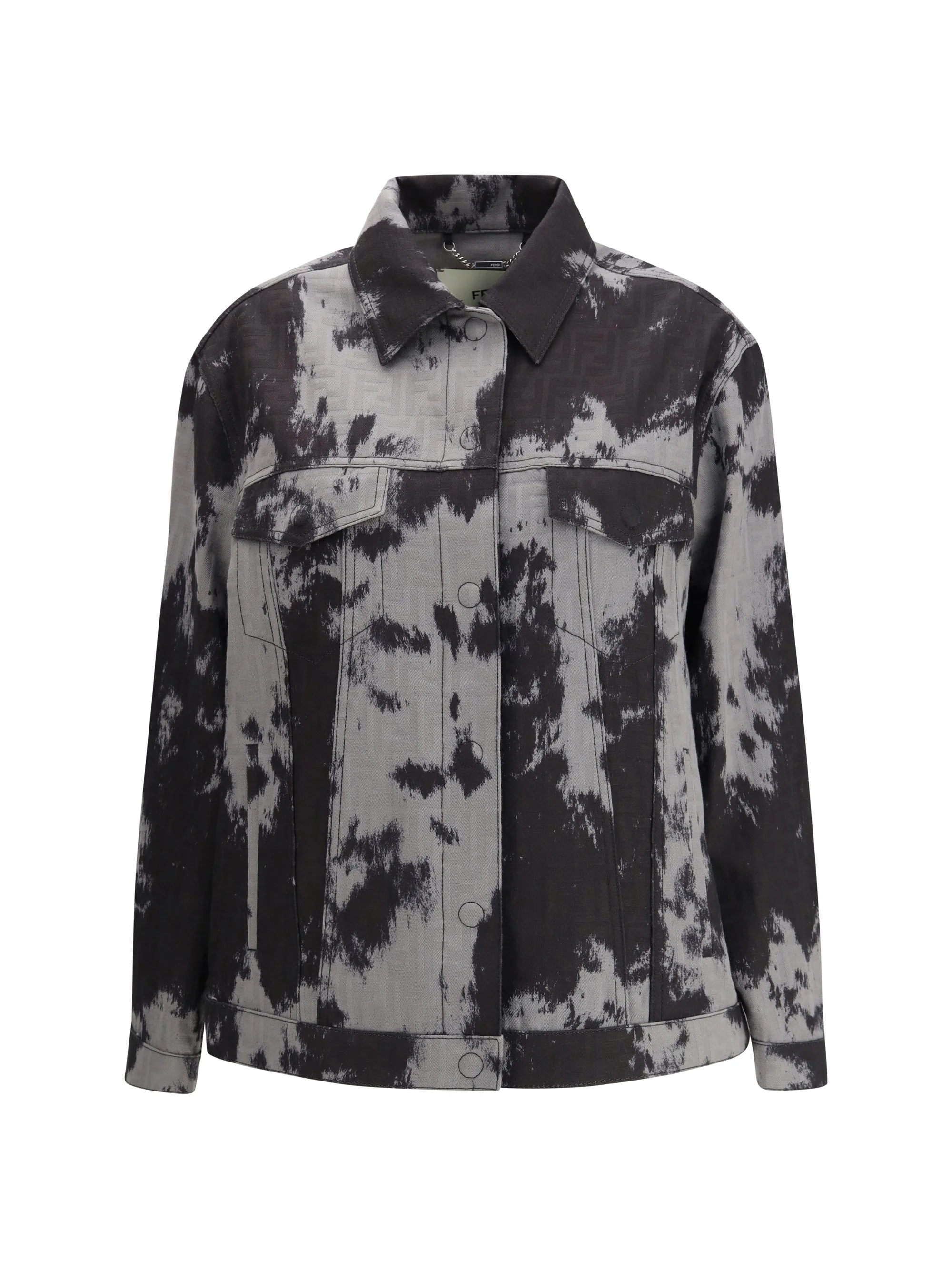 The FF Animalier Denim Jacket by Fendi features an oversized cut with a shirt collar, long sleeves, and dropped shoulders that create a relaxed yet structured volume. Flap chest pockets and side welt pockets complete the functional design, together with snap-button fastening. Made from jacquard denim with the FF motif and all-over Frosted Fauna print, it reinterprets the iconic animalier theme from the Maison’s archives with a modern perspective. The leather Fendi Roma label applied on the back adds a distinctive touch of authenticity and refinement. Size Type: IT SKU: FLF798AVF5F0GME Our Products Are 100% Genuine. In All Cases We Stand By The Authenticity Of Every Product Sold On Our Site. All sales are final and we only accept returns for quality issue. Buyer is responsible for any import tax/duty if applicable.