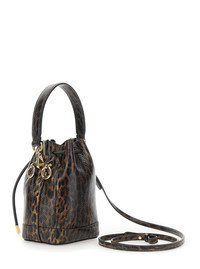 drawstring-closure leopard-print bucket bag