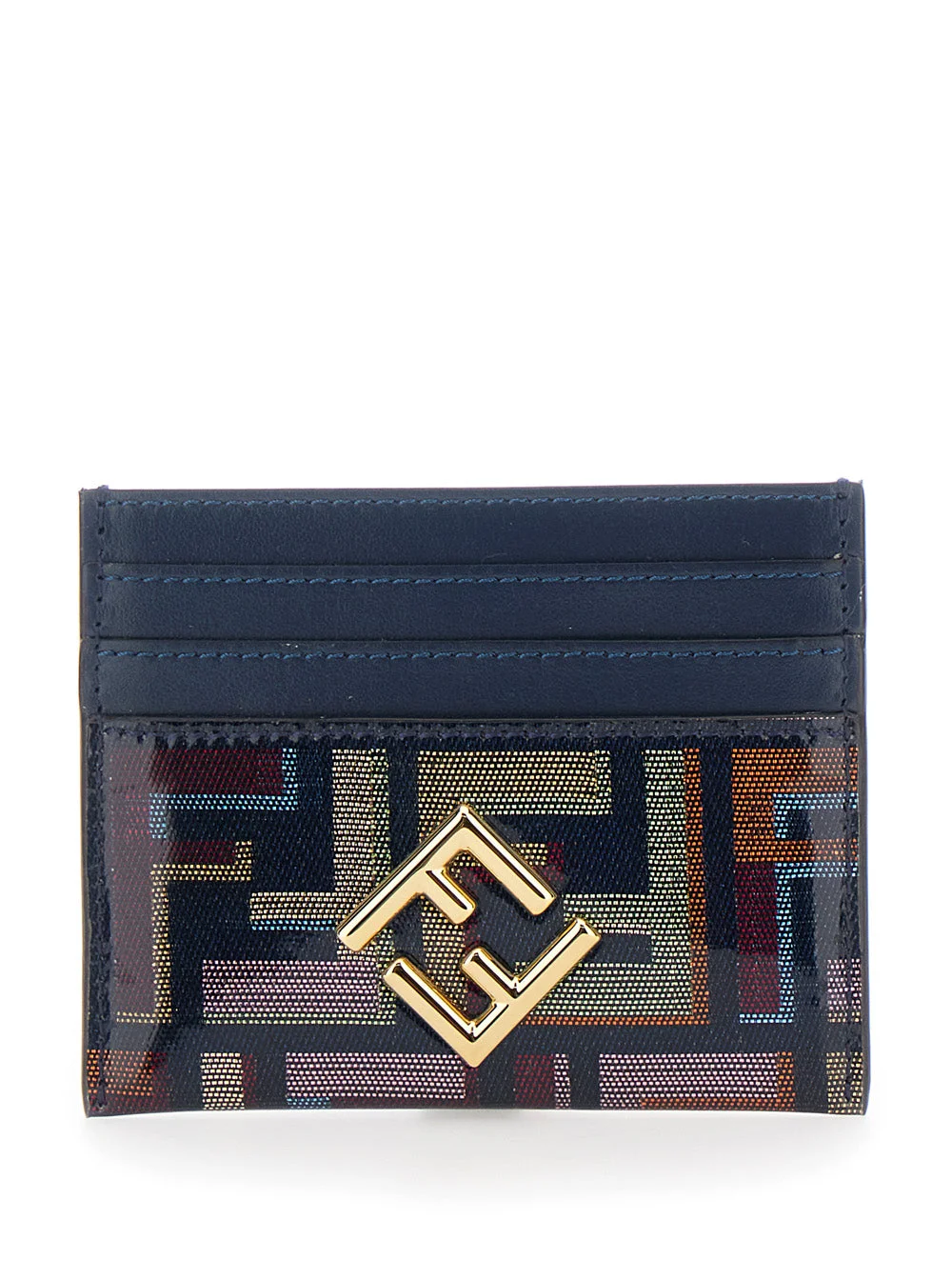 Fendi Women Multicolour Card Holder With Metal Logo On Front And All-Over Ff Motif In Fabric Woman