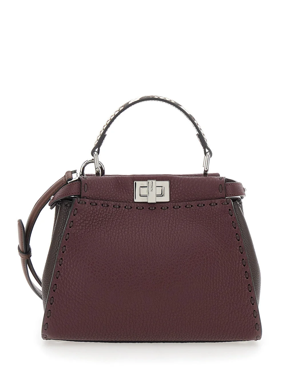 Fendi Women 'Peekaboo' Bordeaux Handbag With Snakeskin Handle And Turn-Lock Closure On Both Sides In