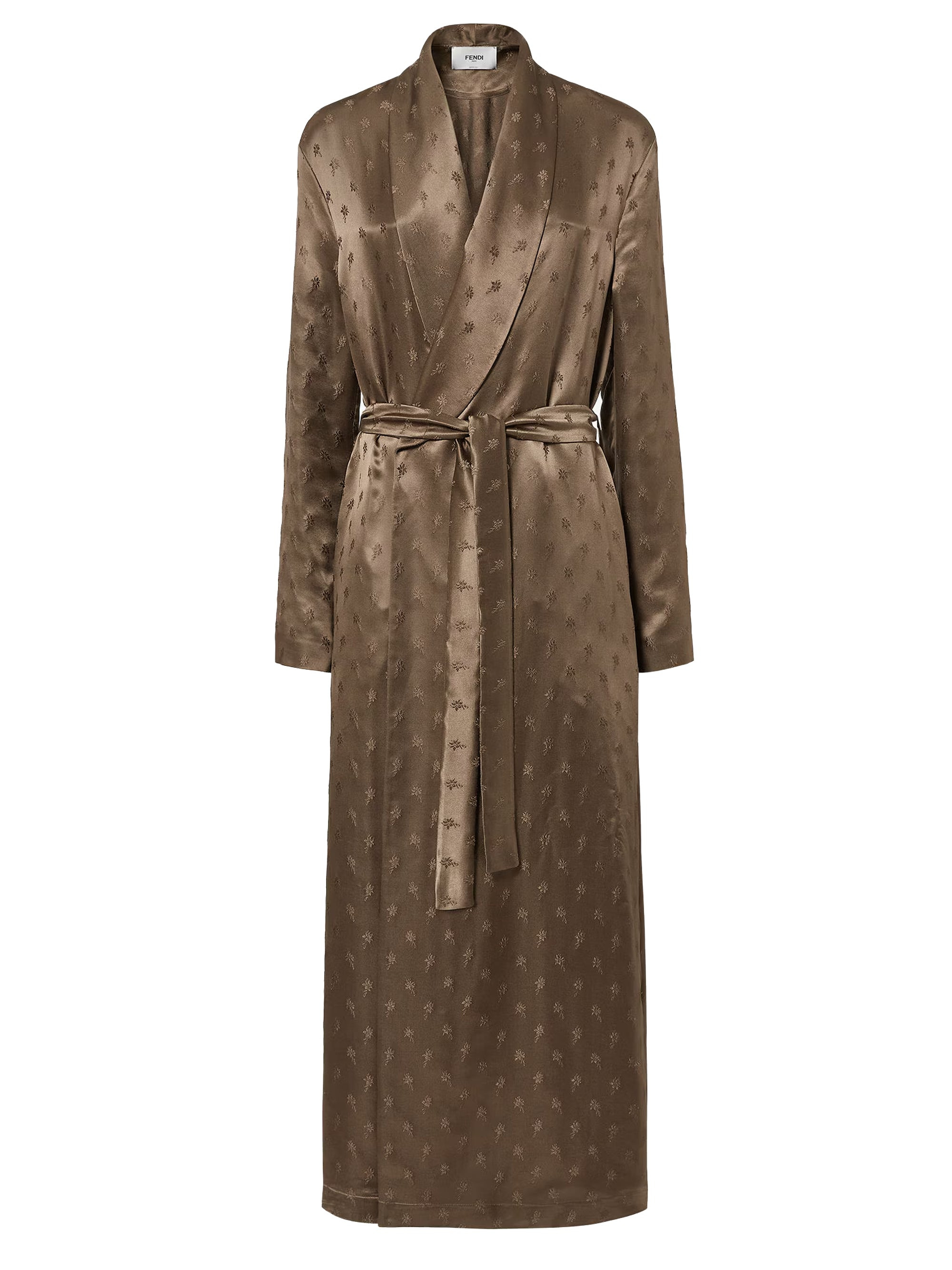 DESCRIPTION ::FENDI brown silk overcoat with a shawl collar, dropped shoulders and a belt and small button fastening.MADE IN::ItalyCOLOR::BROWN SKU: FF6126AQ3OF1RXGBROWN Our Products Are 100% Genuine. In All Cases We Stand By The Authenticity Of Every Product Sold On Our Site. All sales are final and we only accept returns for quality issue. Buyer is responsible for any import tax/duty if applicable.