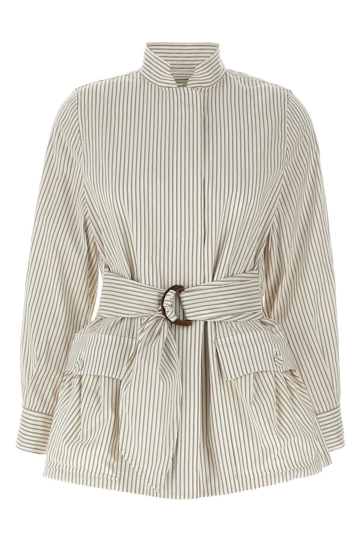 Cotton and silk blouson with all-over contrasting printed striped pinstripe pattern, mandarin collar, pockets, front zip and snap button closure, long cuffed sleeves, back elastic waistband with front belt, front logo embroidery. Color: White Size & Fit: true to size fit Composition: 77% cotton, 23% silk Made in: Italy SKU: FJ7621AQ3LF0XAY Our Products Are 100% Genuine. In All Cases We Stand By The Authenticity Of Every Product Sold On Our Site. All sales are final and we only accept returns for quality issue. Buyer is responsible for any import tax/duty if applicable.