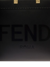 Fendi Women 'Sunshine' Black Handbag With Embossed Logo And Tortoiseshell Handles In Leather Woman