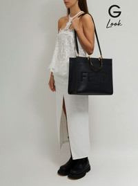 Handbag Black Leather Front logo Two upper handles in tortoiseshell plexiglass Lined internal compartment Gold-colored hardware Removable shoulder strap Dimensions: 31x36x15 cm SKU: 8BH386ABVLF0KUR Our Products Are 100% Genuine. In All Cases We Stand By The Authenticity Of Every Product Sold On Our Site. All sales are final and we only accept returns for quality issue. Buyer is responsible for any import tax/duty if applicable.