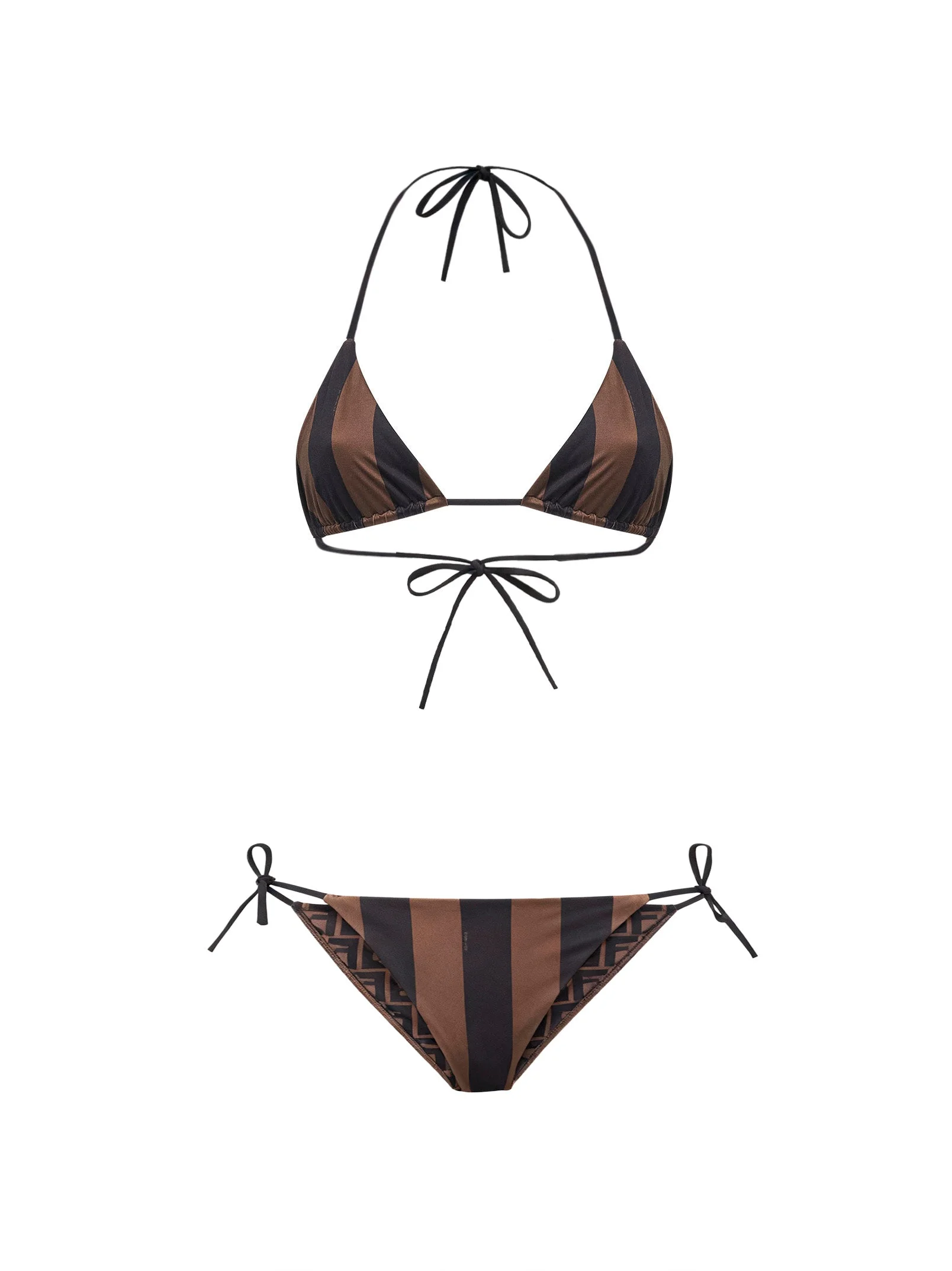 •Self-ties at neck back and back •Sliding triangle top •Low-waisted bottom with side self-ties •Reversible tobacco and dark brown Pequin striped lycra and tobacco and dark brown FF lycra design •Color: tobacco/dark brown •82% Polyamide, 18% Elastane •Made in Italy SKU: fxba28at8gf13iz Our Products Are 100% Genuine. In All Cases We Stand By The Authenticity Of Every Product Sold On Our Site. All sales are final and we only accept returns for quality issue. Buyer is responsible for any import tax/duty if applicable.