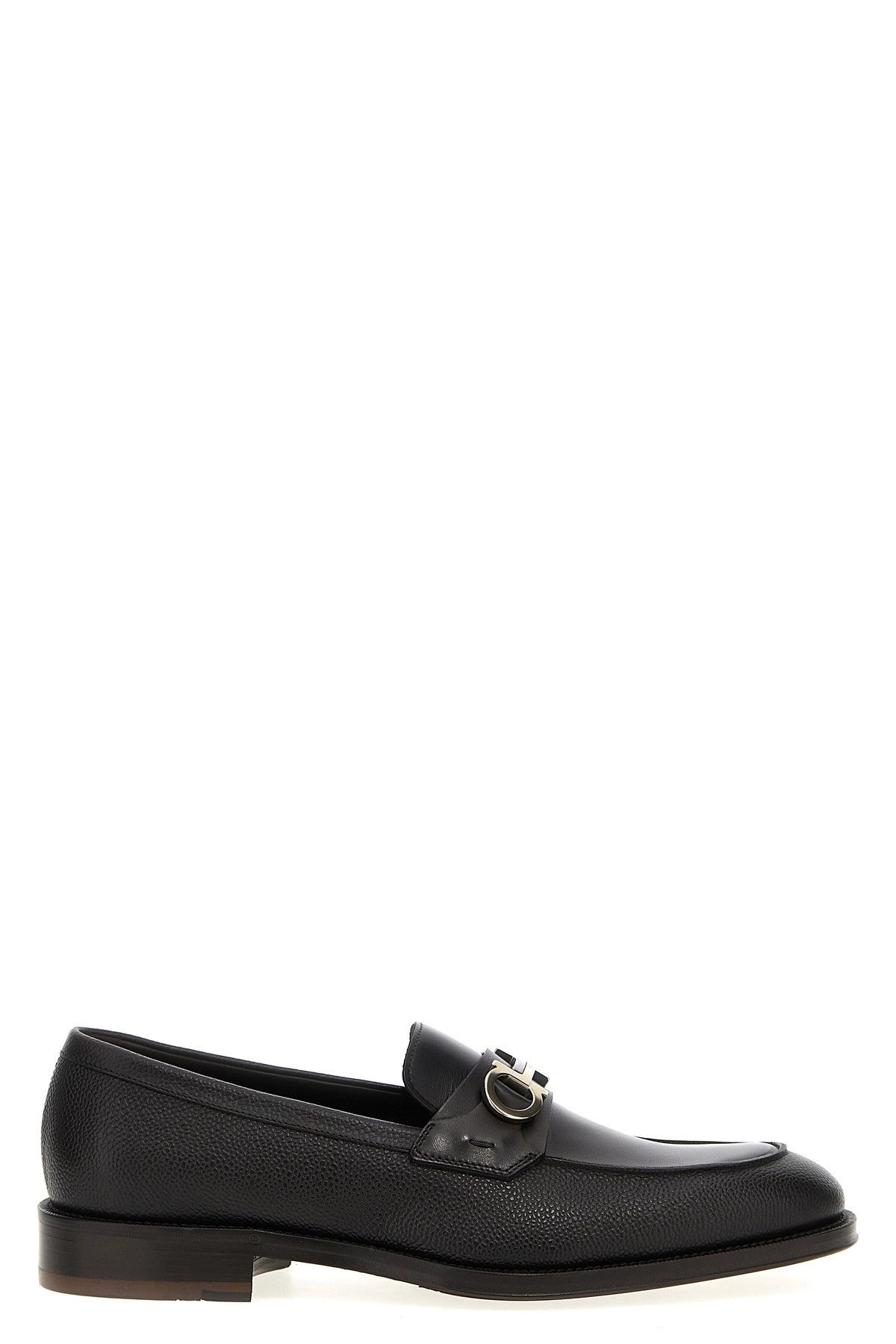 'Benedict' grained leather loafers with smooth leather top, front 'Gancino' detail, leather sole. Color: Black Composition: 100% calfskin leather (Bos Taurus) Size&Fit: US FERRAGAMO SIZE EEE fit SKU: 778841HICKORY Our Products Are 100% Genuine. In All Cases We Stand By The Authenticity Of Every Product Sold On Our Site. All sales are final and we only accept returns for quality issue. Buyer is responsible for any import tax/duty if applicable.