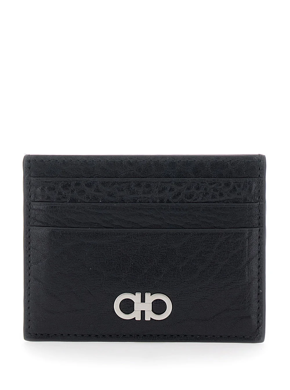 Ferragamo Men Black Card Holder With Gancini Plaque On The Front In Leather Man