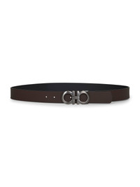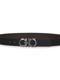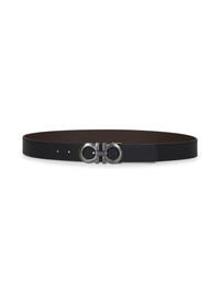 Ferragamo Men Black Leather Gancini Reversible Belt